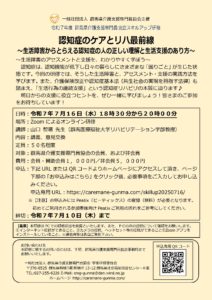 【7月16日開催】スキルアップ研修(認知症のケアとリハ最前線)のご案内