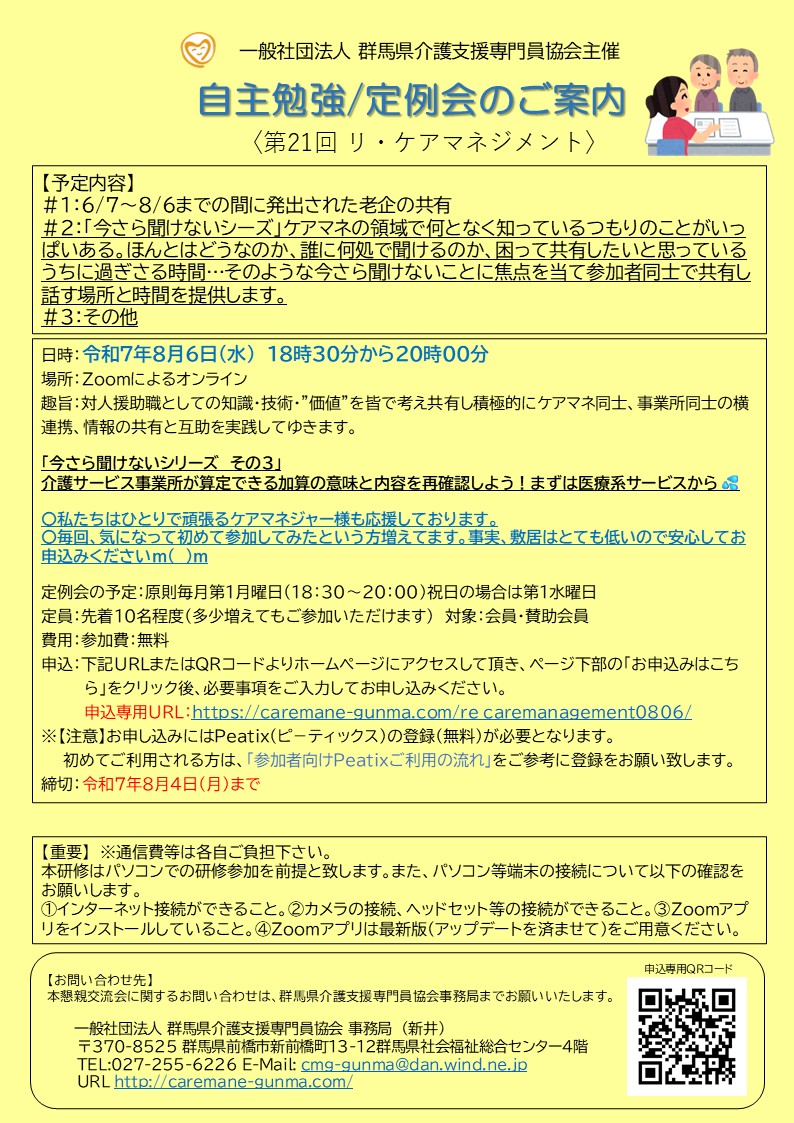 自主勉強/定例会<第21回リ・ケアマネジメント>のご案内